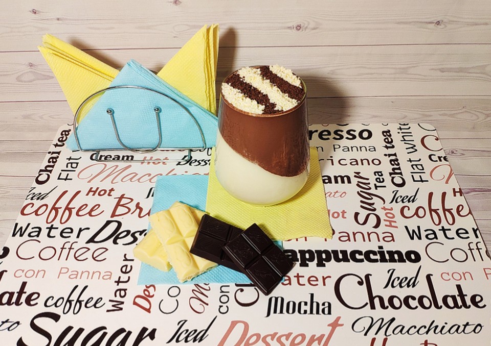 Hæld forsigtigt den mørke chokoladecremen i glasset og stil i køleskab i minimum 3 timer.
